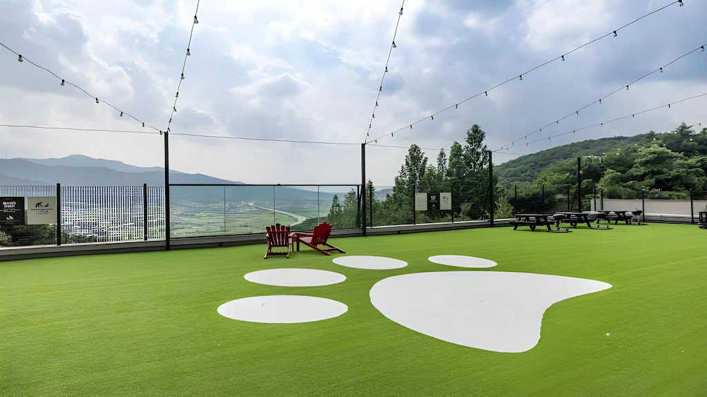 숙소 내에는 반려견을 위한 야외 전용 공간이 약 삼백오십 평 규모로 마련되어 있어 넓은 환경에서 자유롭게 뛰놀 수 있다. 체격에 따라 구역이 나누어져 있어 안전하게 이용할 수 있으며 실내 놀이 공간도 준비되어 있어 날씨의 영향을 받지 않는다. 펫 객실 이용 시에는 별도 비용 없이 시설을 이용할 수 있다.
