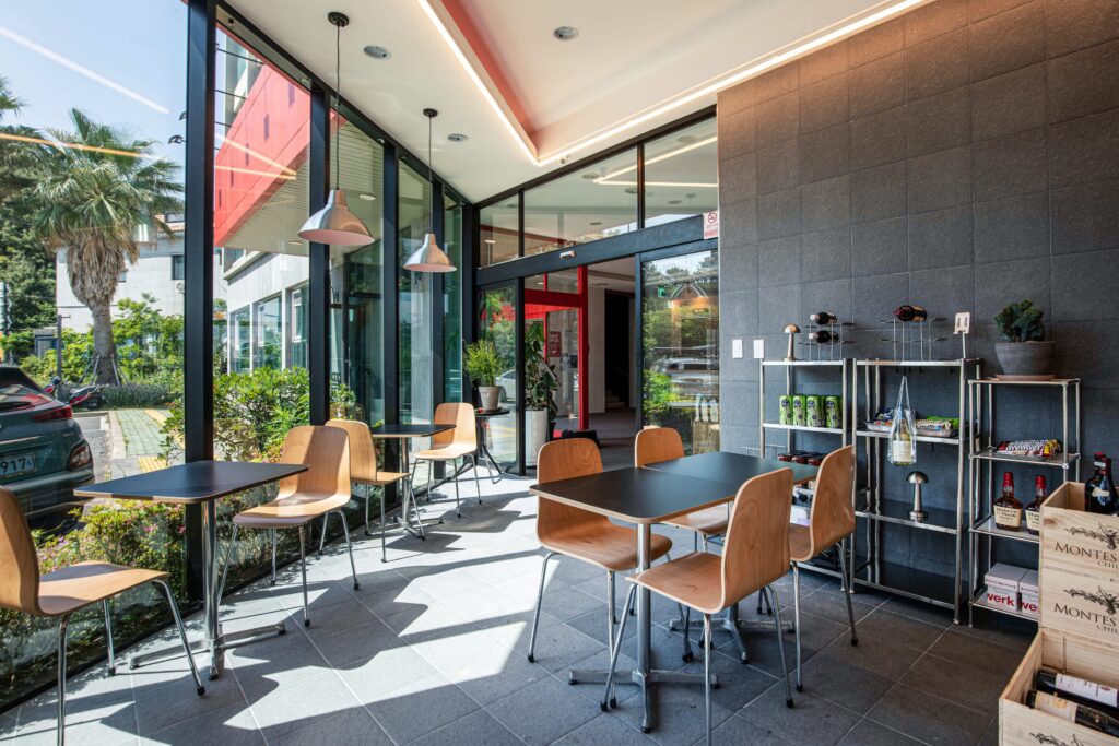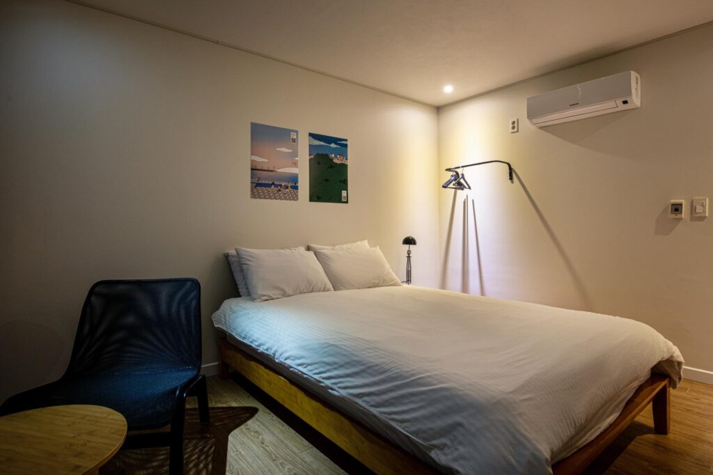 제주시 중심은 교통과 생활 인프라가 잘 갖춰져 있어 워케이션에 가장 적합한 지역이다. 도두봉스테이호텔은 제주공항에서 차로 약 10분 거리에 위치해 접근성이 뛰어나다. 객실은 더블과 트윈 두 가지 타입으로 마련되어 있으며, 테이블이 있어 간단한 업무도 가능하다. 숙소 내 라운지는 자유롭게 이용할 수 있으며 휴일에는 러닝이나 요가 프로그램에 참여할 수 있다. 특히 무지개 해안 도로를 달리는 러닝은 색다른 경험을 선사한다. 요가는 유료로 운영되며 사전 예약 후 체험할 수 있다.