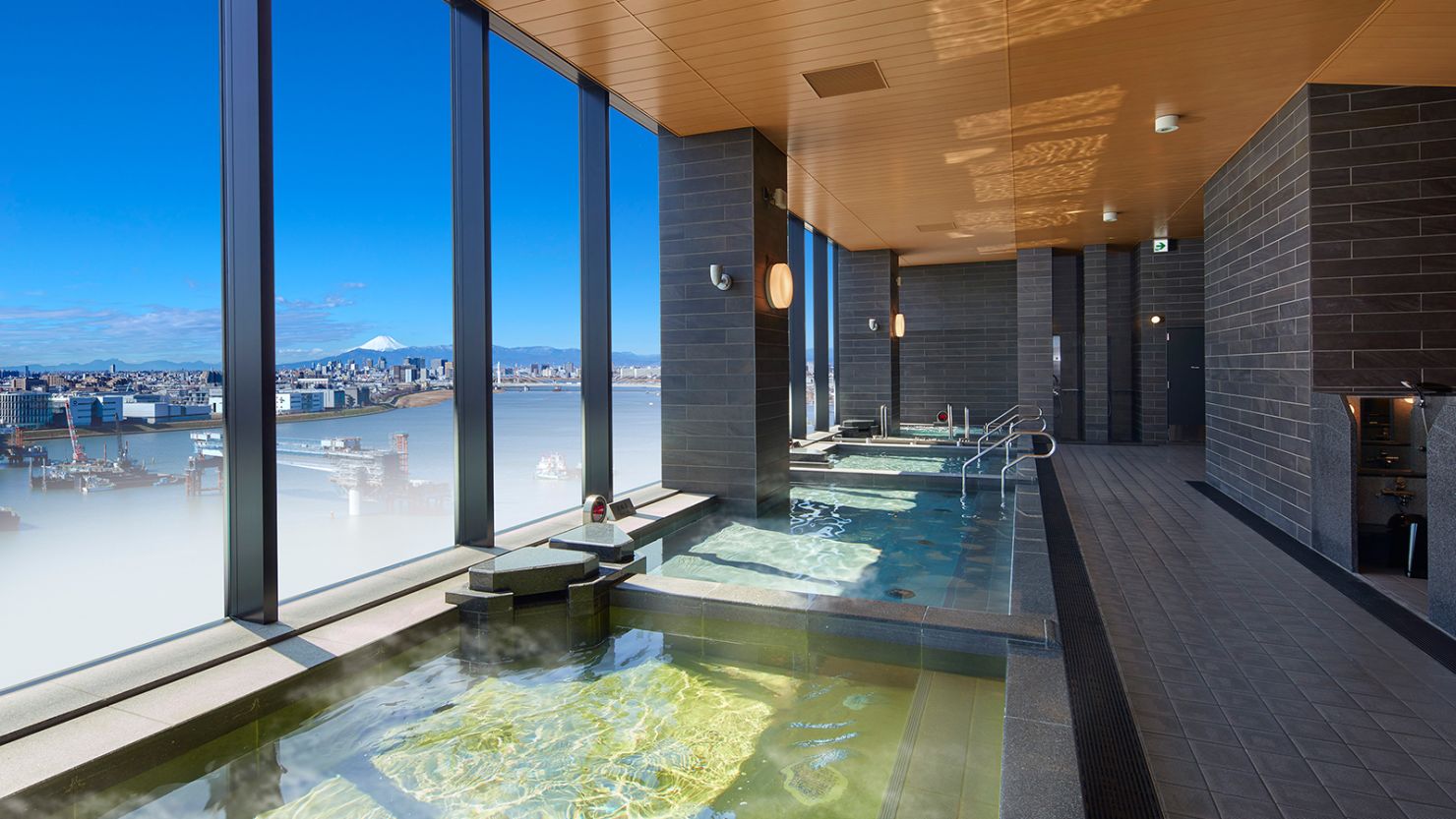 - 이즈미 텐쿠노 유 하네다 공항: 호텔 최상층에 위치한 24시간 운영 천연 온천 시설입니다. 후지산이나 비행기 활주로를 조망할 수 있는 노천탕이 특징입니다.