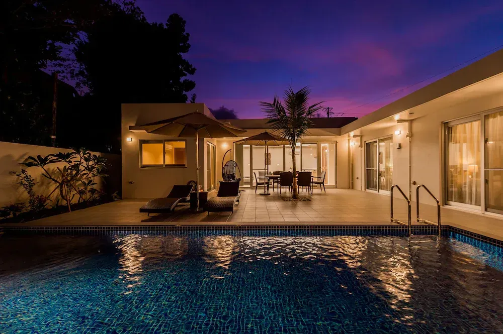 도심에서 떨어져 나고에 위치한 풀빌라예요. 한적한 곳에서 조용하게 힐링과 휴식을 취할 수 있는 숙소죠. 취사 가능하며 주방엔 냉장고, 전자레인지, 조리도구와 접시 등이 구비되어 있어요. 독채 형식엔 수영장이 있어 프라이빗한 물놀이가 가능해요.
