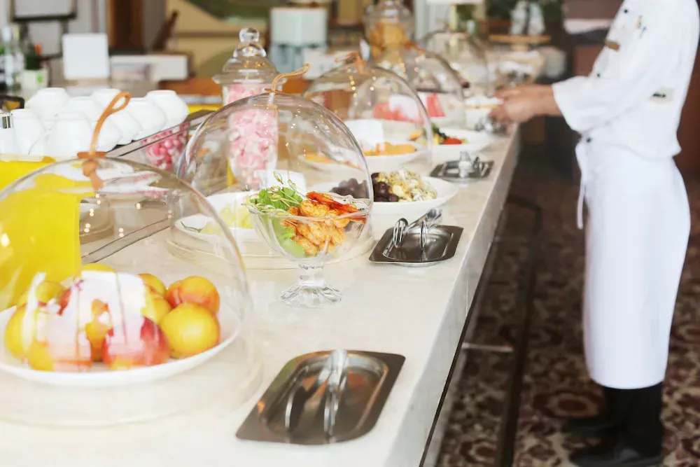 7시 30분부터 10시까지 뷔페식 조식을 드실 수 있어요. 9시 30분까지만 입장 가능해요. 샐러드부터 각종 베이커리, 시리얼 등 가볍게 먹을 수 있는 메뉴부터 불고기, 볶음밥, 한식과 양장피, 꿔바로우 등 중식까지 다양하게 준비되어 있어요. 과일과 요거트, 커피 등 디저트까지 있으니 아침을 배부르게 시작하실 수 있답니다. 당연히 맛도 좋아요.