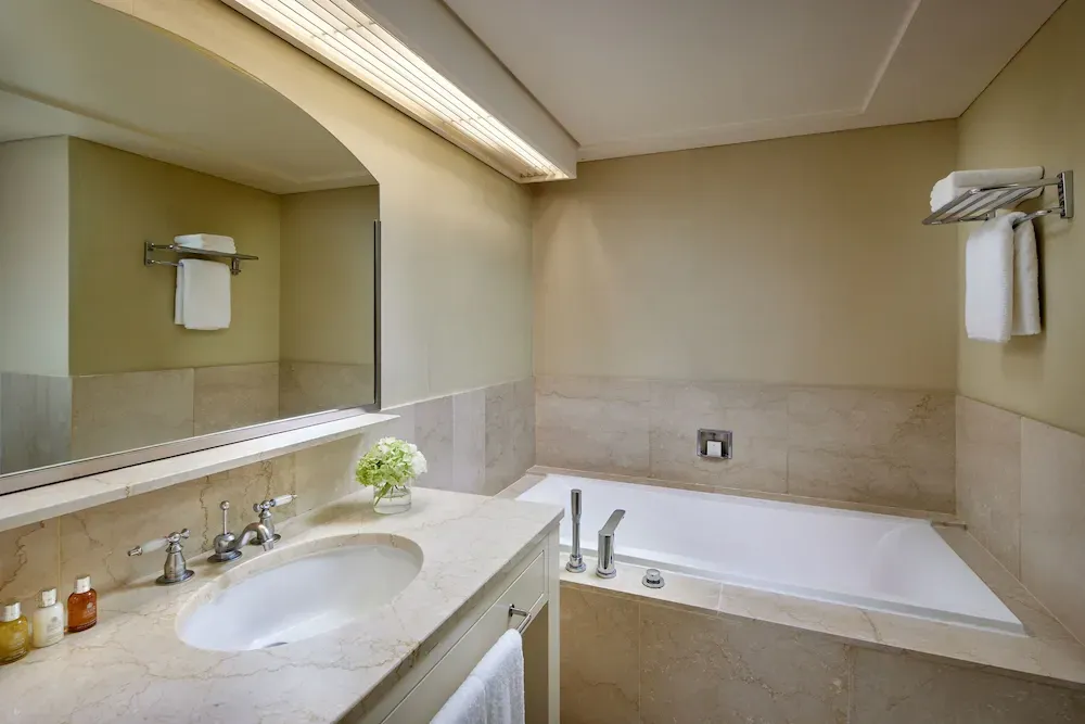 옷장 안에 금고와 샤워가운, 슬리퍼가 있어요. 옷걸이도 많아서 옷을 정리하기 좋아요. 미니바엔 전기포트, 생수, 컵, 커피, 티, 주류가 구비되어 있어요. 미니바는 유료이고 생수만 무료예요. 화장실도 깔끔해요. 욕조가 있어서 반신욕하며 피로를 풀어낼 수 있어요. 샴푸, 컨디셔너, 보디워시, 비누 등 기본 어메니티가 제공돼요.